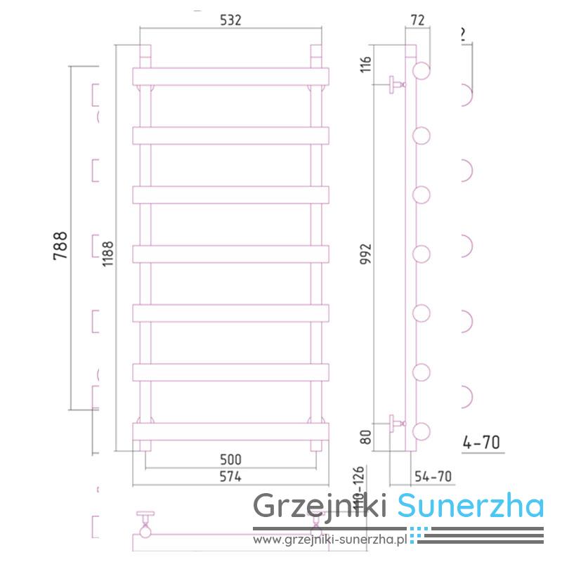 Drabinka łazienkowa Atlant wyróżnia się prostą ale funkcjonalna bryłą. Grzejnik idealnie sprawuje się jako suszarka do ręczników i można go wyposażyć w grzałkę elektryczną.