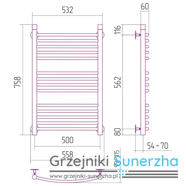 Grzejnik Bohemia w wersji ARC charakteryzuje się profilami grzewczymi wygiętymi w lekki łuk, które ułatwiają rozwieszenie i suszenie ręczników.