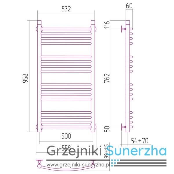 Grzejnik Bohemia w wersji ARC charakteryzuje się profilami grzewczymi wygiętymi w lekki łuk, które ułatwiają rozwieszenie i suszenie ręczników.